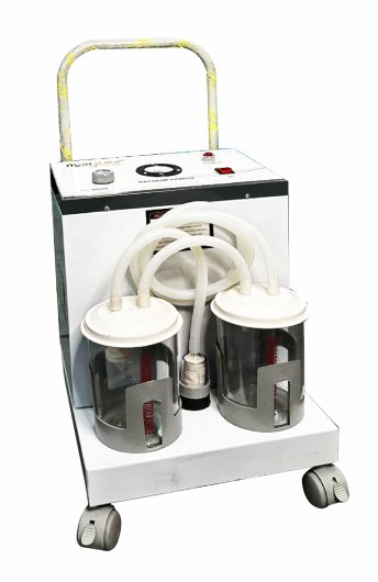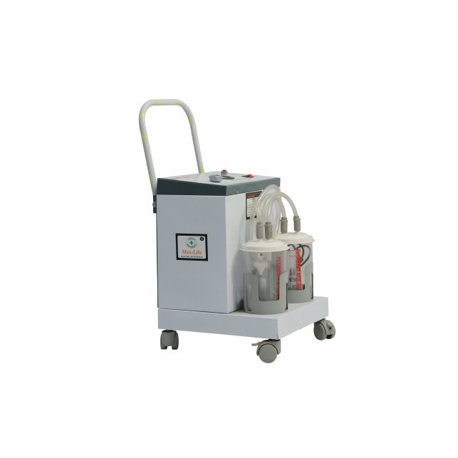 Crafted with precision, the machine features a 1.5L PVC jar with durable rubber/ABS lids, housed in a mild steel (M.S.) epoxy powder-coated cabinet for maximum durability and hygiene. Equipped with essential safety and control components such as a vacuum gauge, vacuum control knob, overflow cut-off device, power indicator, and patient suction tubing, this suction machine ensures safe and user-friendly operation.
